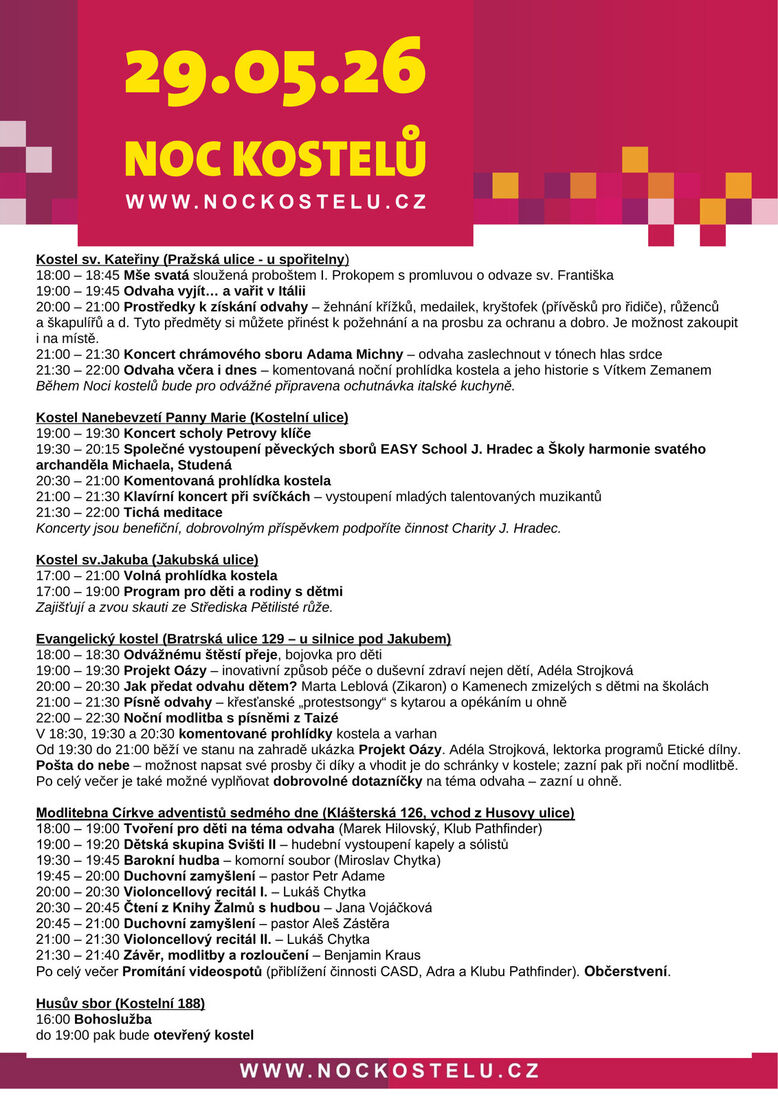 Společný plakát Noci kostelů 2026 jindřichohradeckých církví.